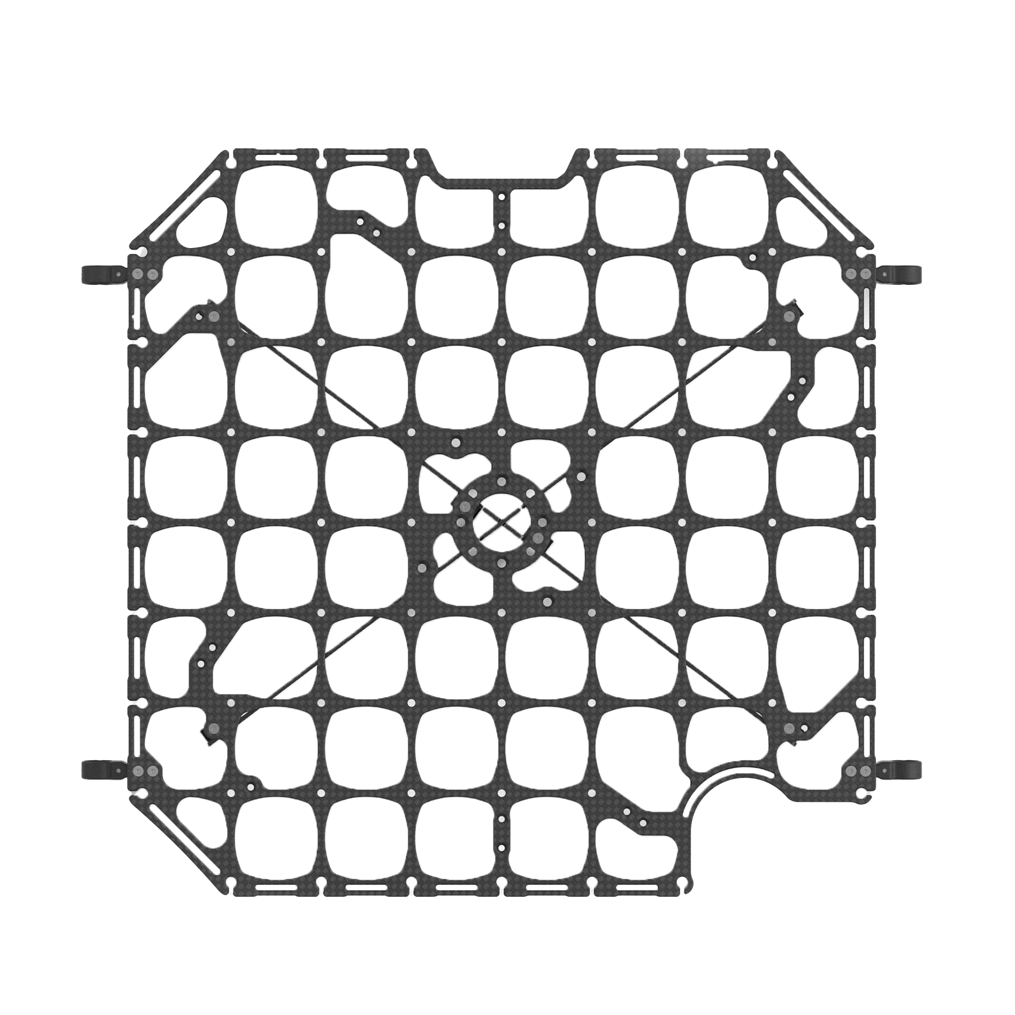 Die Ladebordplatte besteht aus Kohlefaser mit vertikalen Verstärkungen, um eine gute Leistung auch bei den schweren Lasten zu gewährleisten, die die Alta X tragen kann. Die Platte verfügt über Schlitze und Befestigungspunkte, um nahezu jede Nutzlast sicher zu befestigen.