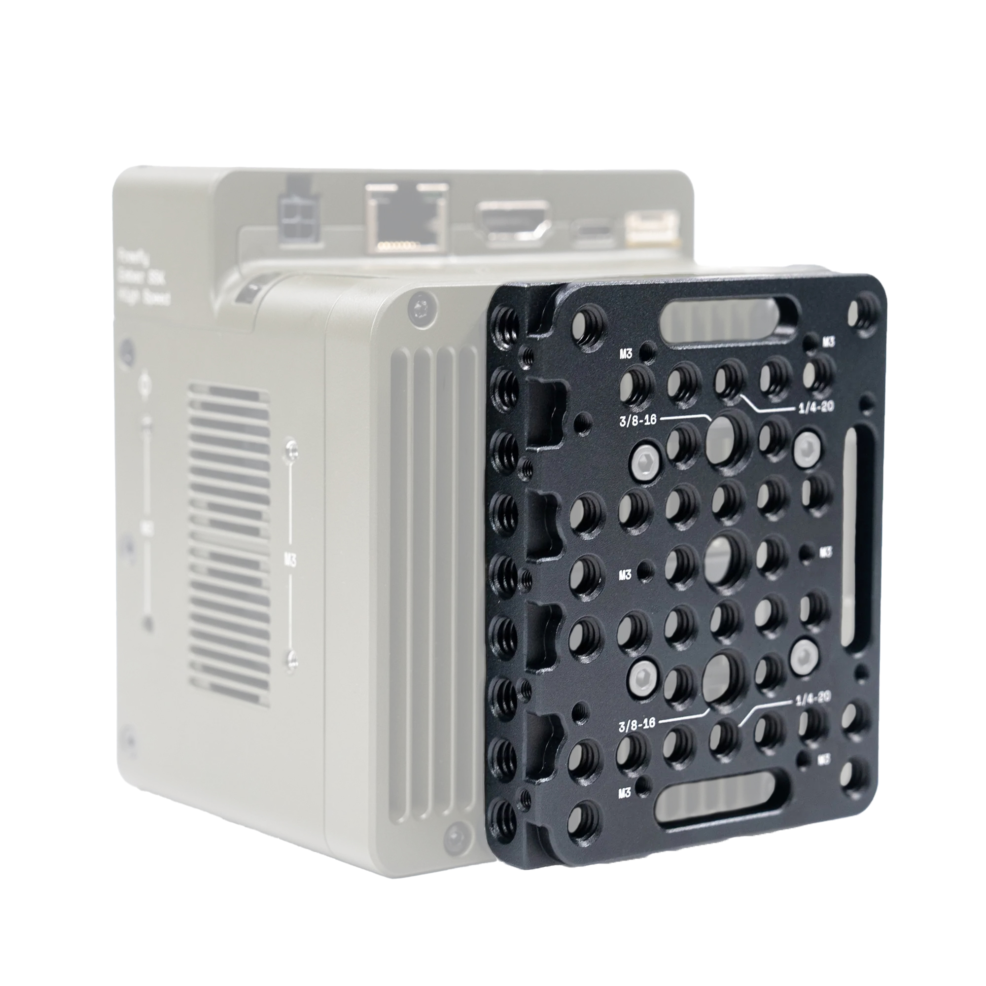 Die Cheese Plate ermöglicht es, jedes Akkusystem oder Zubehör an die Rückseite der Ember-Kamera anzubringen.