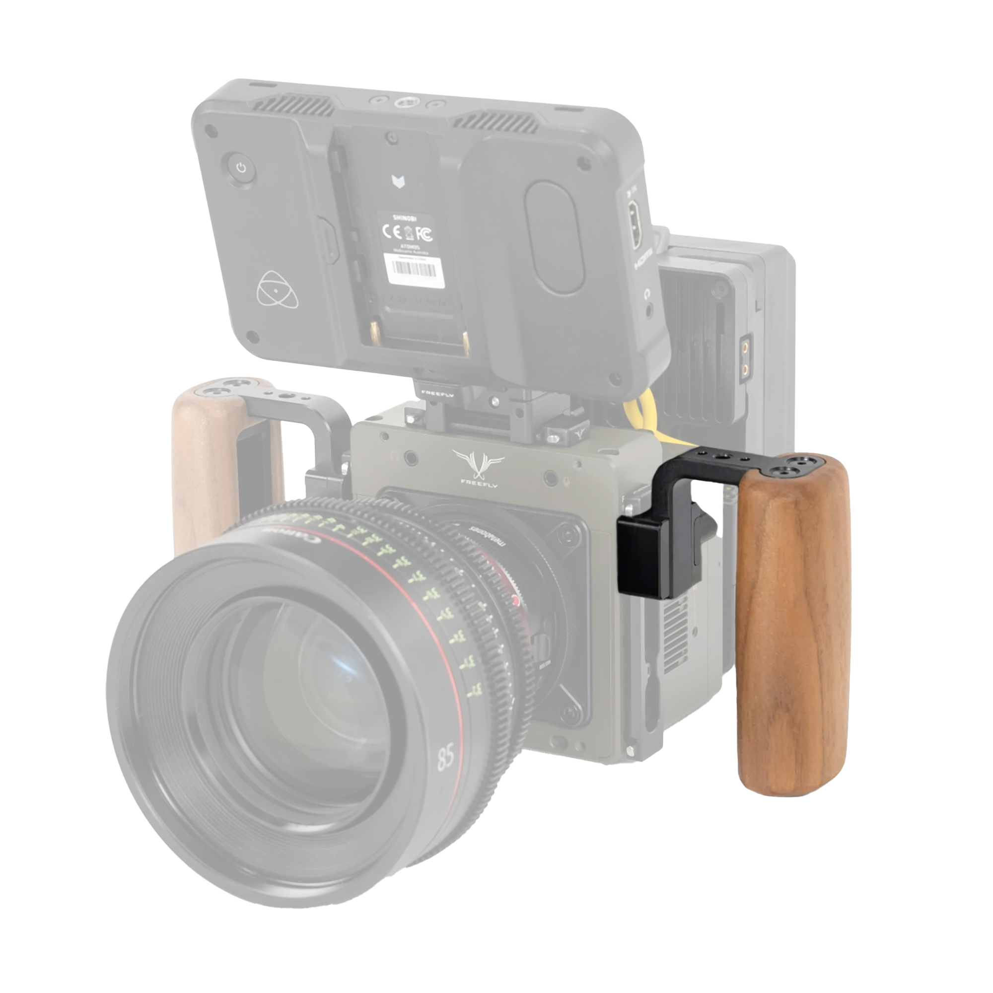 Dieser Griff wurde von Freefly für ein Handheld-Shooting entworfen. Mit einer integrierten NATO-Schnellspannklemme funktioniert der Griff nahtlos mit dem NATO-Schienen von Freefly. Die Klemme kann auch einfach umgedreht werden, um den Klemmhebel auf Ihrer bevorzugten Seite zu platzieren. Der hochwertige Holzkörper fühlt sich großartig an und verleiht einen klassischen Look und das Design wurde für Festigkeit optimiert, während es so leicht wie möglich gehalten wurde. Der zusätzliche ¼”-20 Montagepunkt auf der Oberseite des Griffs erleichtert das Hinzufügen weiterer Zubehörteile.