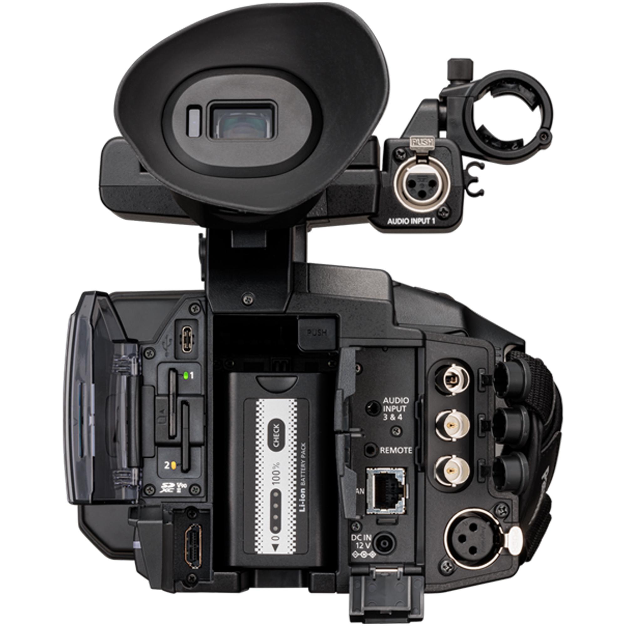 The AG-CX370 is a compact 4K camcorder equipped with a wide range of professional features. It offers outstanding image quality with 10-bit 4K recording and a wide-angle lens with 20x optical zoom. The camera supports NDI HX2 for high-quality streaming and its 4-channel audio input and 12G-SDI output ensure versatile integration into broadcast environments. Ideal for recording and streaming in live productions.